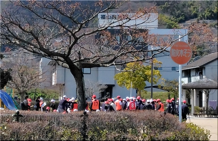 昨日の正午近くでしたでしょうか…小学6年生の皆様が、我が家前を、先生に引率されゾロゾロと通過して行きます。