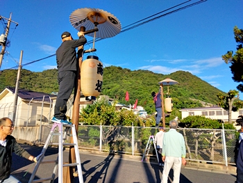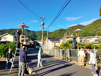 | 2024/10/05(土) 水呑八幡神社例祭準備御神燈・傘提灯∴レ設作業 |
