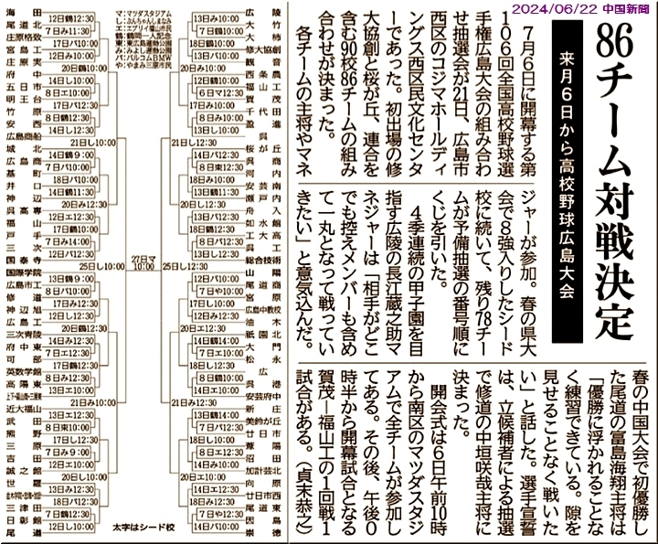 7/6(土)に全国高校野球選手権広島大会が開幕で、翌日・7/7(日)には早速、福山市民球場で開催の2試合、松永×大門∞府中東×可部$の観戦となりました。