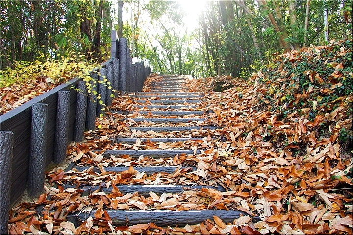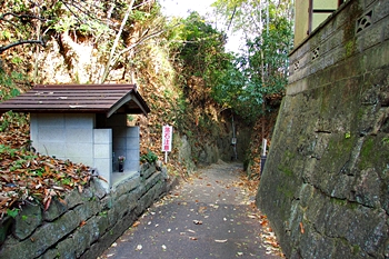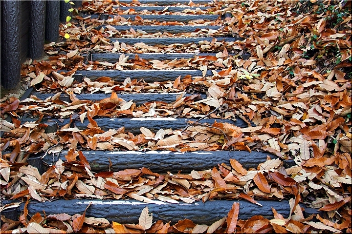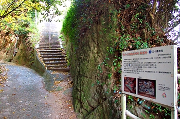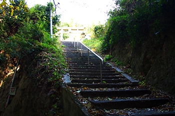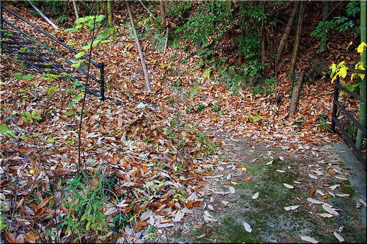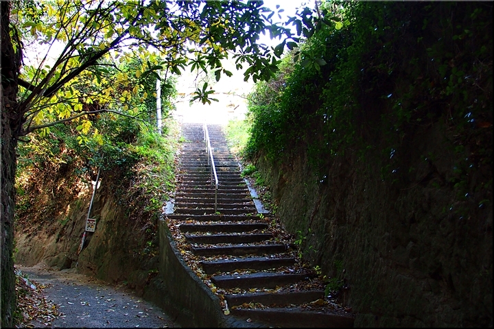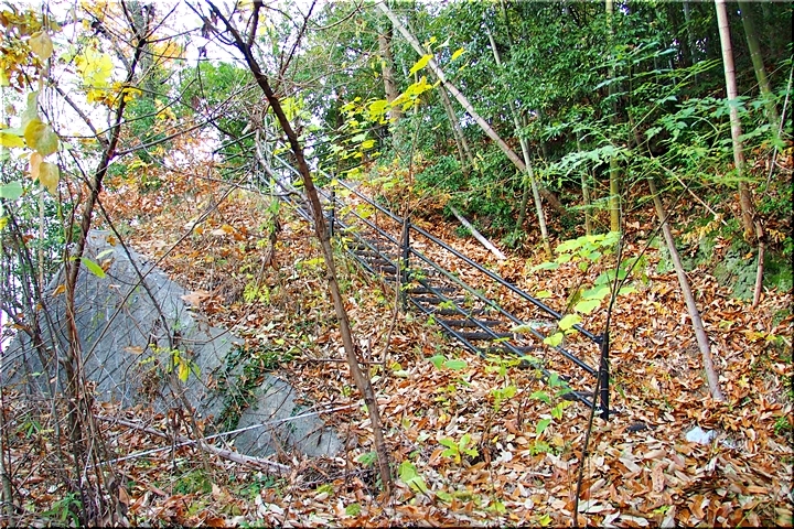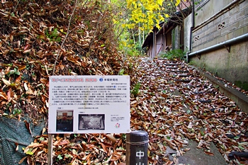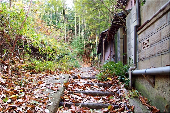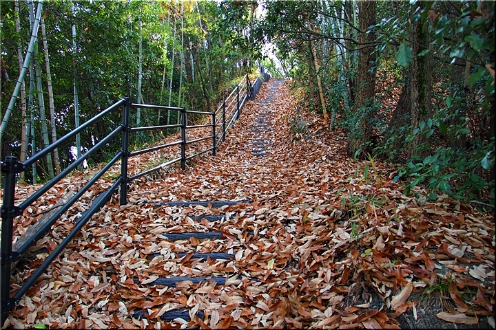 落ち葉を踏みしめながら、ユツクリと中山城跡(半坂妙見社)≠ノ向かって石段を上がります。この時期に中山城跡を訪れます方は、あまりおられないのかも…落ち葉の状況から、人が歩いた気配が伺えませんから…
