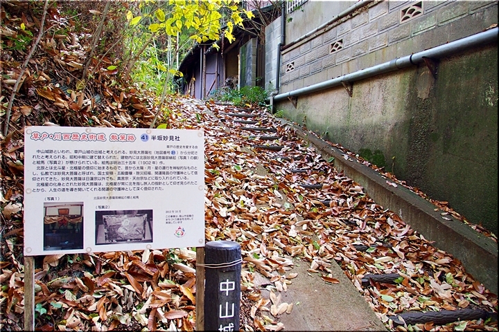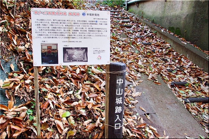 それでは、落ち葉で埋もれた石段を上がり中山城跡(半坂妙見社)≠ヨと向かってみます。足を滑らせますと転倒しそうですから、要注意ですネ(^-^)//"
