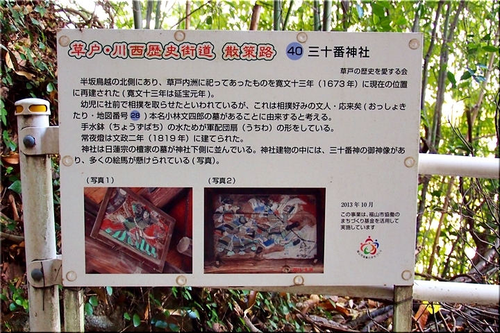 すると、スグに、今度は「三十番神社」の案内板が…これには、こんな記載が…