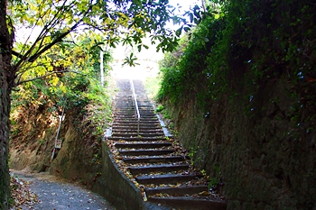 この石段を進めば「中山城跡(半坂妙見社)」に向かうのでしょうけど、後で上ることにしまして、まずは直進です。