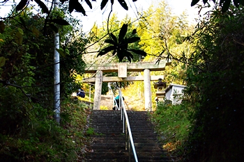 中山城跡ともいわれ、草戸山城の出城と考えられる。妙見大菩薩社(地図番号<31>)から分祀されたと考えられる。昭和中期に建て替えられた。建物内には北辰妙見大菩薩縁起(写真1の額)と絵馬(写真2)が懸けられている。絵馬は明治35年(1902年)作。