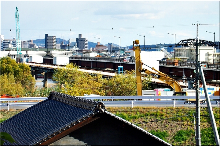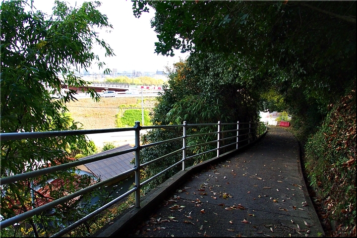 ここからは道は下りとなり、そして、左側の芦田川方向に眼を向けますと、福山沼隈道路の工事現場が…ふ〜ん、ここに出て来ましたネ。本来は、こちらから「三十番神社」「半坂妙見社」へとお詣りされますのでしょうねぇ〜