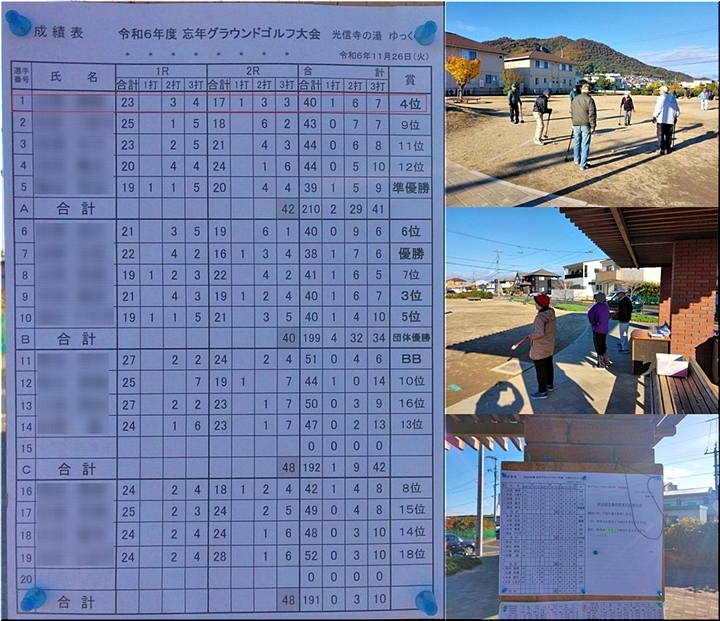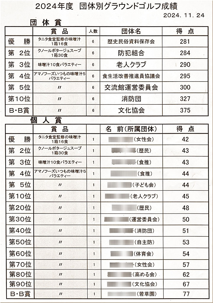 ついでに、嫁さんの成績を見てみますと、「前半19・後半22」のトータルスコア41≠ナ7位≠ナしたけど、賞品は優勝・準優勝・3位・4位・5位・BB≠フみですから残念でした(^-^)