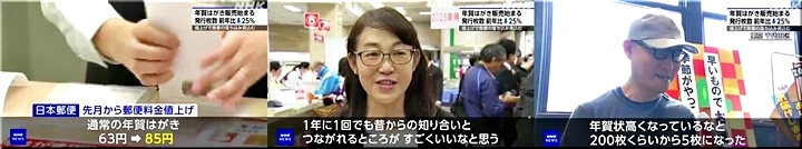 文具店の岡本祐子さんは「けさもさっそく購入した方がいた。郵便料金も高くなったので、これを機会に年賀状じまいをされる方も多いのではないか」と話しています。