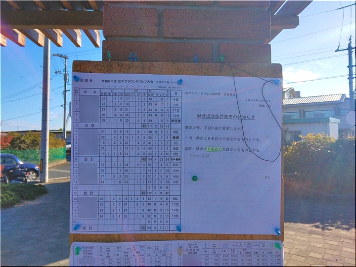 掲示板には、先日・11/26(火)の忘年GG大会≠フ成績表が(^-^)