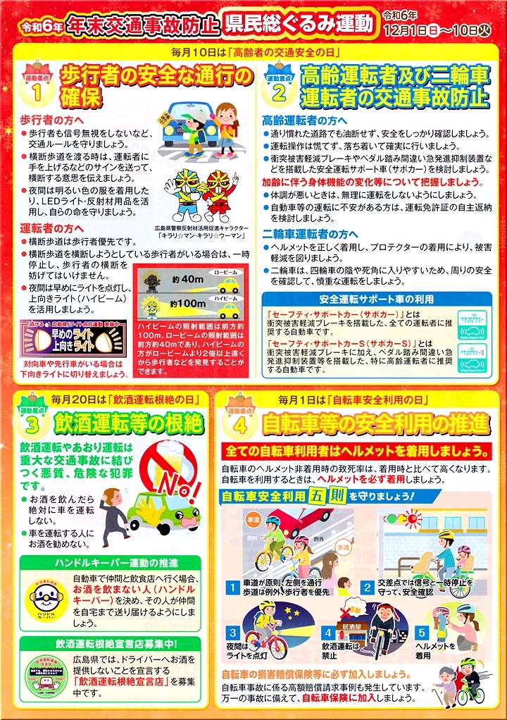 それと、12/1(日)〜12/10(火)の10日間は「令和6年年末交通事故防止県民総ぐるみ運動=vでありますか…