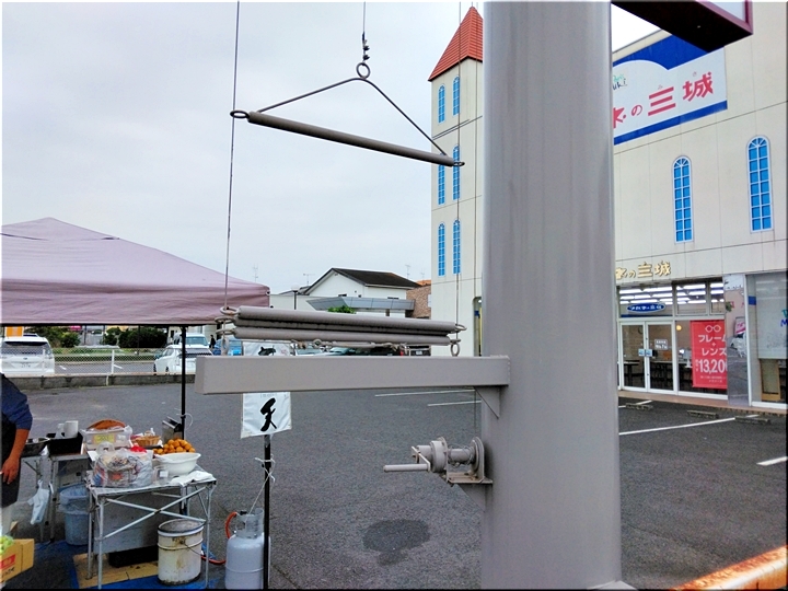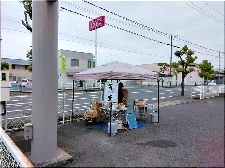 もみじBKのお隣りはメガネの三城《anですけど、この駐車場の入口近くには食べ物の出張店舗が。何の販売?…と近寄りまして確認してみますと、『名物 芋天 新食感 imoten』の表示が(^.-)☆