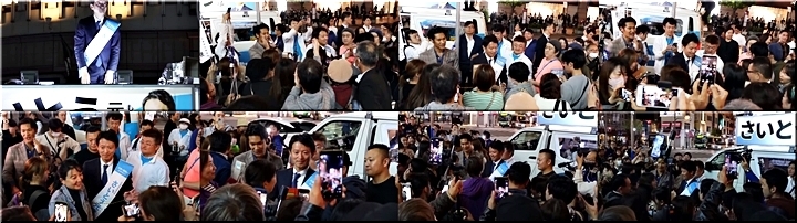 報道によりますと、公示後暫くは支持者も少なく寂しい、厳しい選挙活動を余儀なくされていました斎藤元彦氏ですけど、一転、今では街頭演説にはもの凄い数の聴衆者が(^-^)