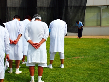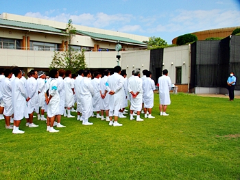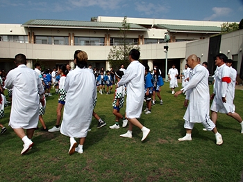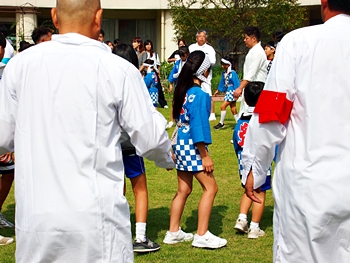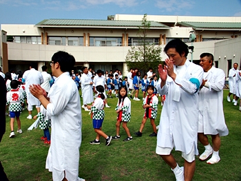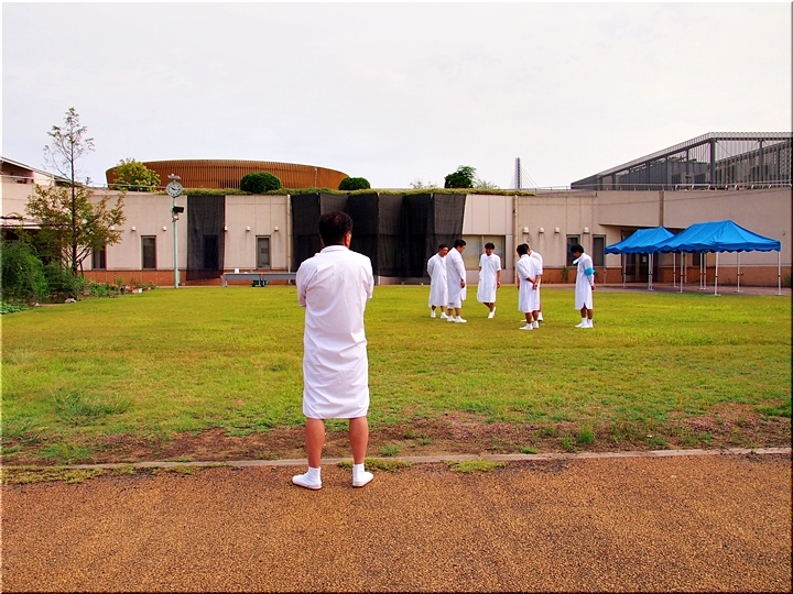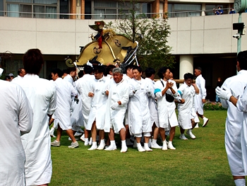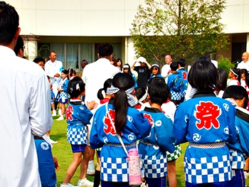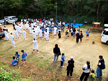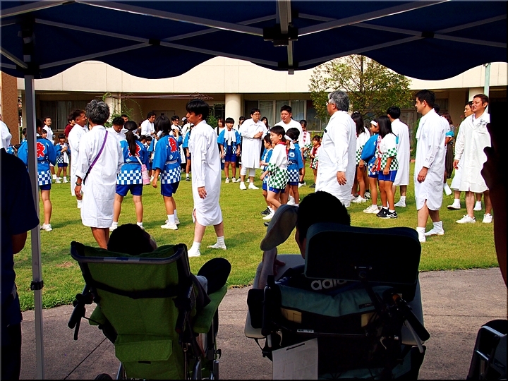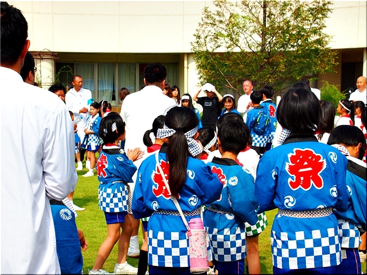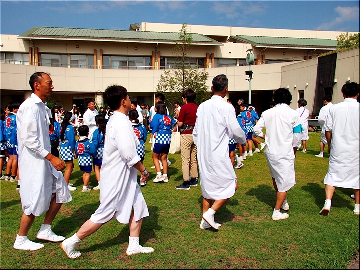 芝生の上では、さすがに亥の子≠ヘ出来ませんから、若草園では、御神輿廻しと踊りで園の皆様と交流でした(^-^)/"