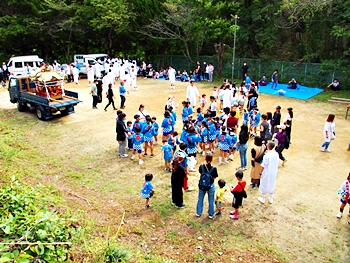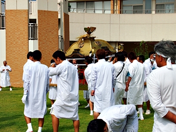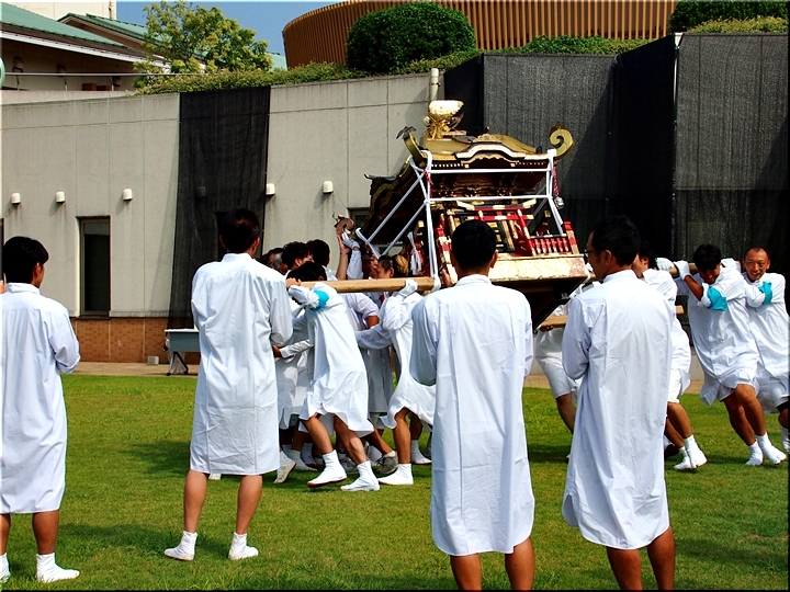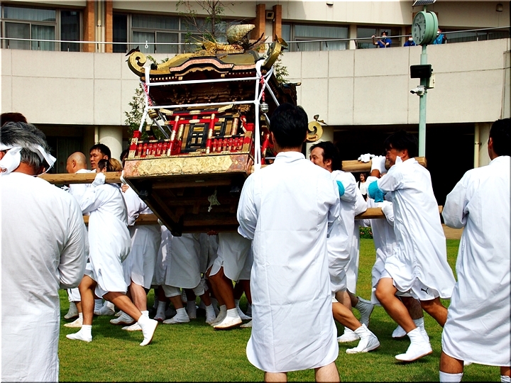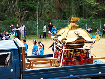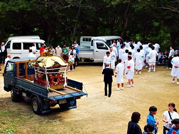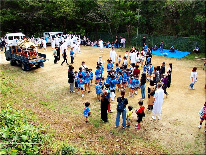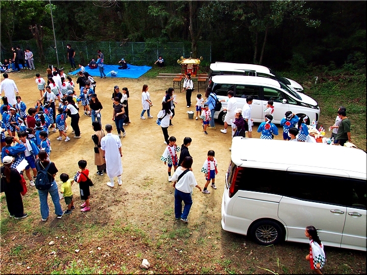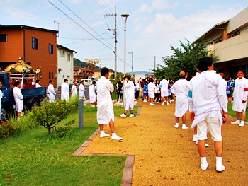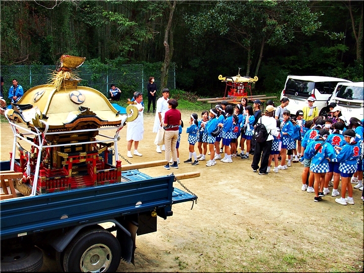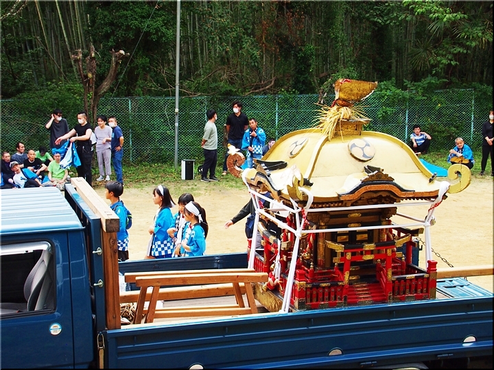 何年か前までは、御神輿は台車に乗せ、長い紐を付け、全員で引っ張ってノンビリと歩いて中村町内へと向かっておりましたけど、近年は、ササッと車で(^.-)☆