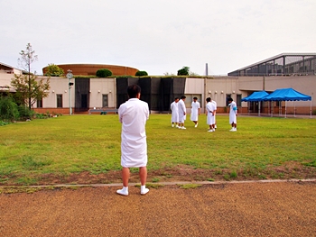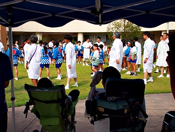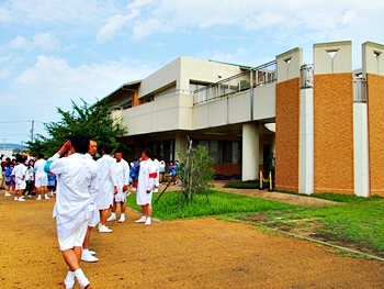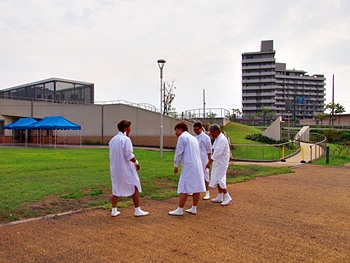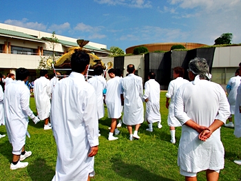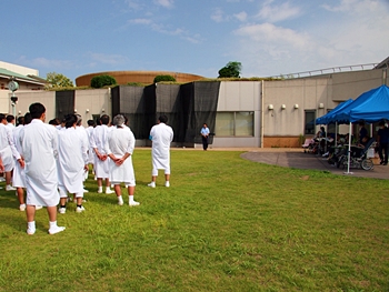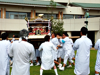 福山六方学園≠フ皆様との交流を終えますと、神輿も人も、今度は、我が町内の若草園≠ヨと移動です。