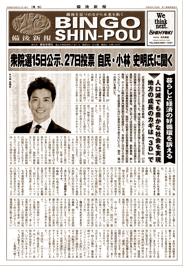 ◆【衆院選 候補の訴えと横顔】広島6区 小林史明氏自民・前