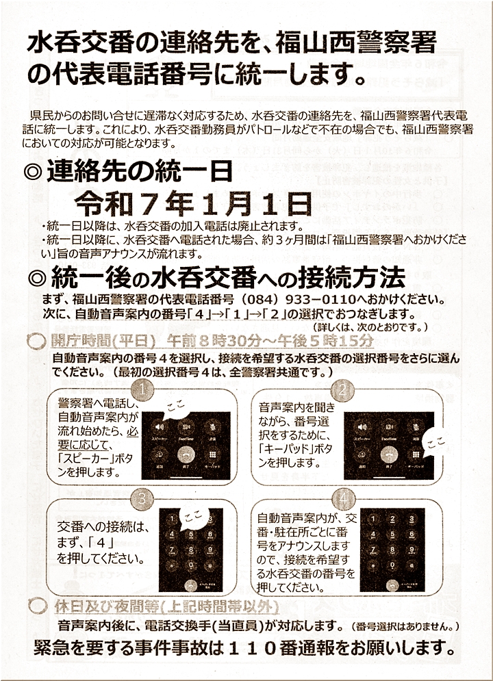 それと、水呑交番の連絡先が変更ですか…これは、電話帳を変更しておかなくちゃあ(^-^)