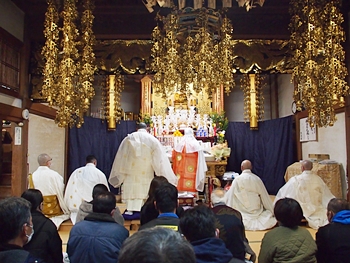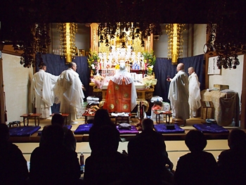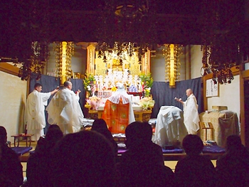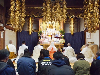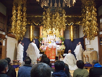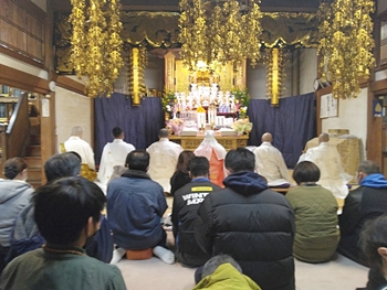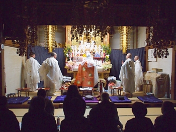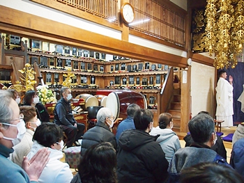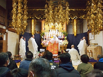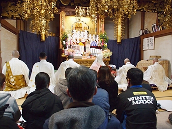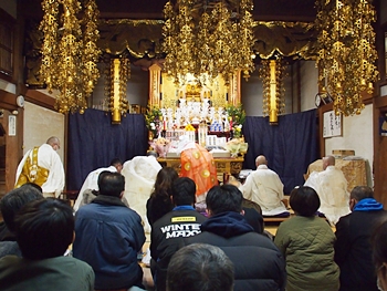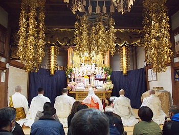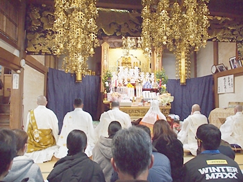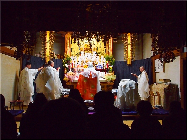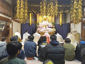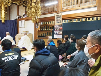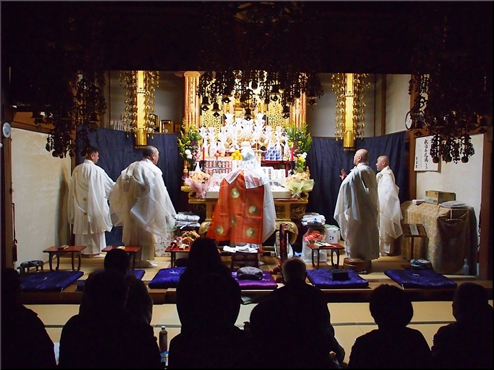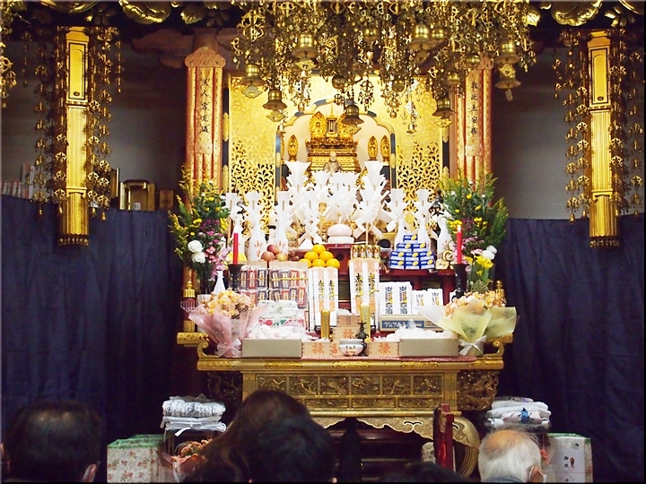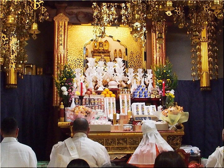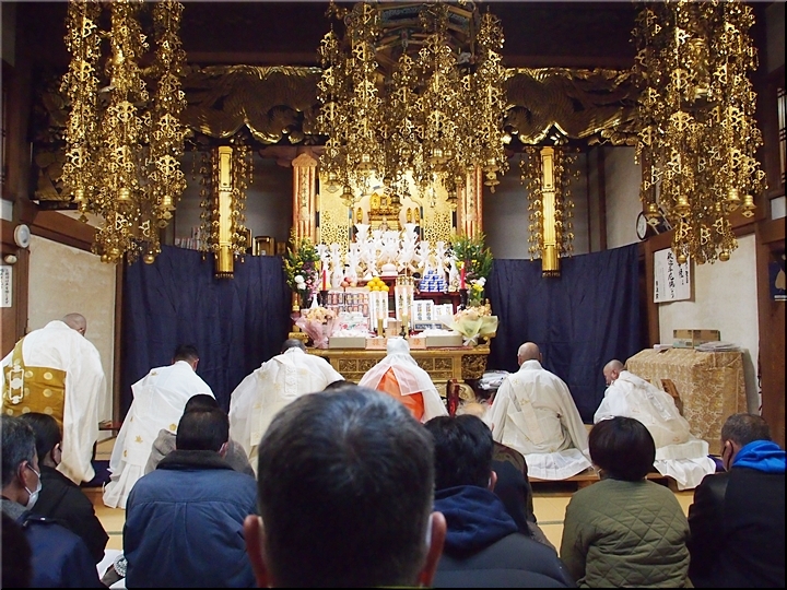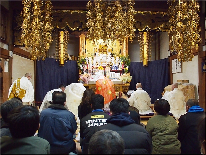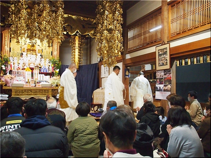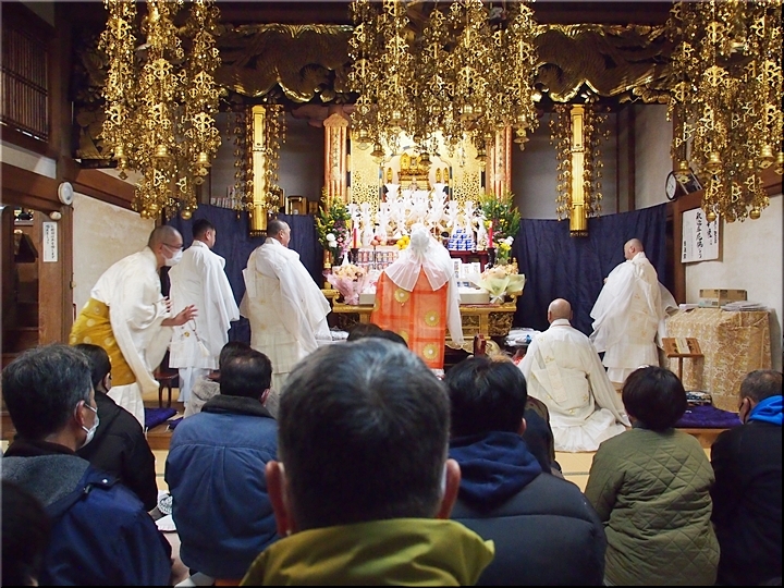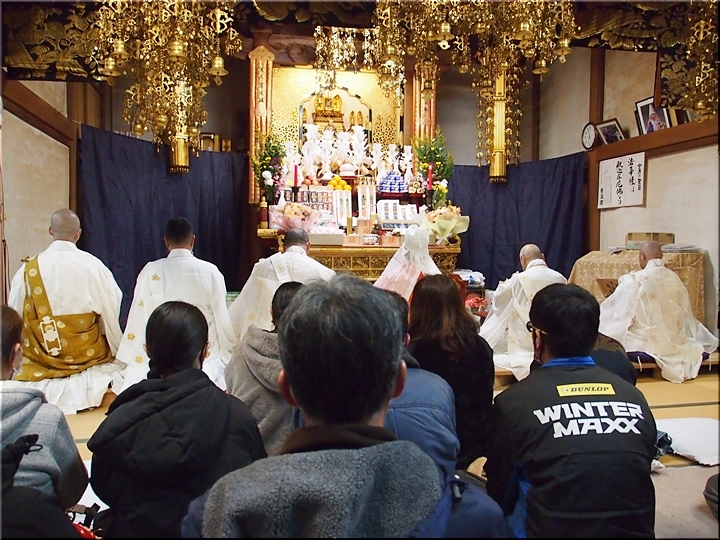 相変わらず嫁さんは、定刻20分も前にサッサと出掛けて行きましたけど、GONsanは我が家を出ましたのは10分前。降雨ですから、開始直後にお寺到着となりました(^-^;
