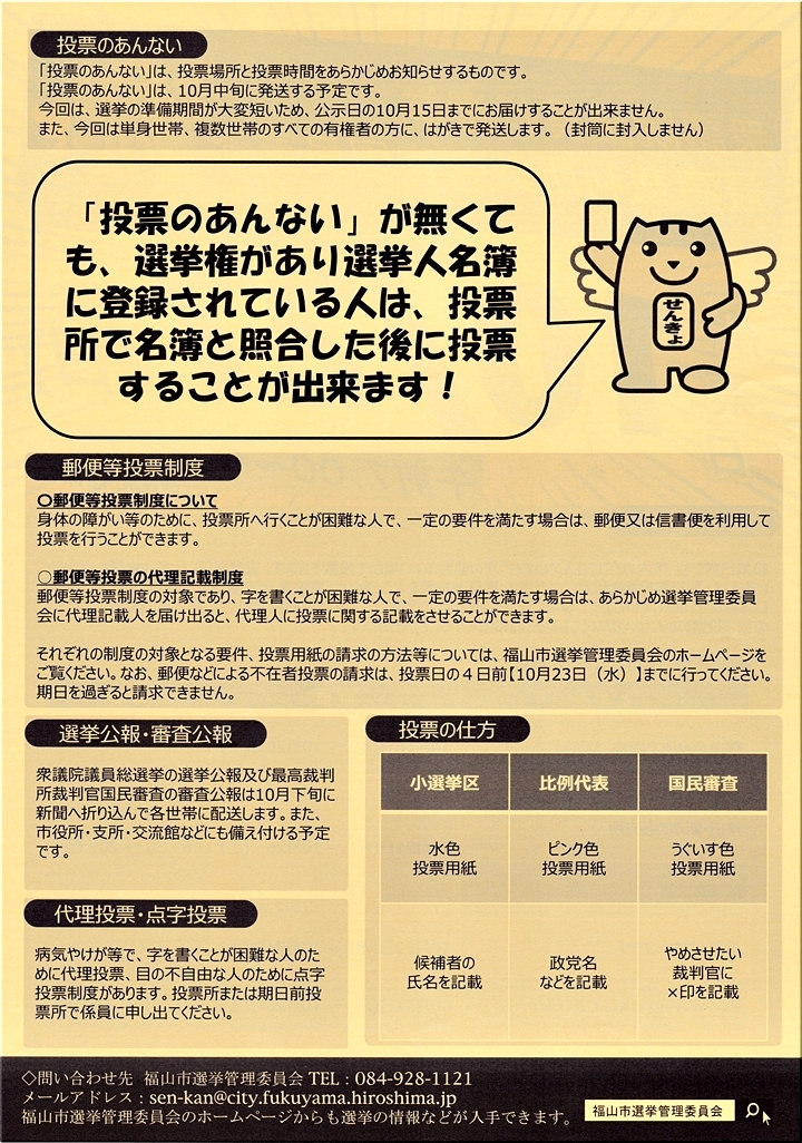 ここ近年の色んな選挙におきましては、県内でもワースト1・2位を争います福山選挙区の低投票率。今回の投票率は、さて、どうなりますか。