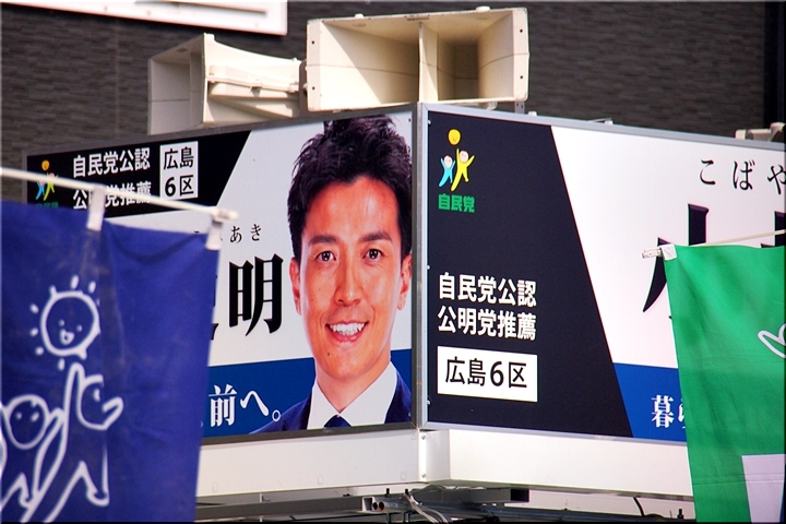 ふん、ふん、この芦田川かわまち広場≠ナ、小林史明代議士は第一声を上げられますのでしょうねぇ〜