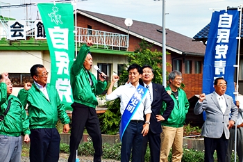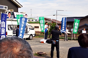 我が町内では、正午から街頭演説会≠ニの事でしたので、定刻5分前にGONsanも出掛けて来ました(^-^)
