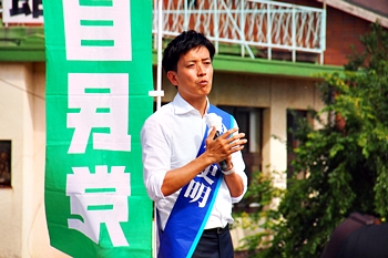 党が招いた政治不信。「会いに行く選挙」を心がけ、支持者の負担になる夜の演説会よりも街頭やミニ集会での対話を重視する。キャッチフレーズは「ともに、前へ」。政治との距離が離れているからこそ、地域に出向いていく。(江川裕介)