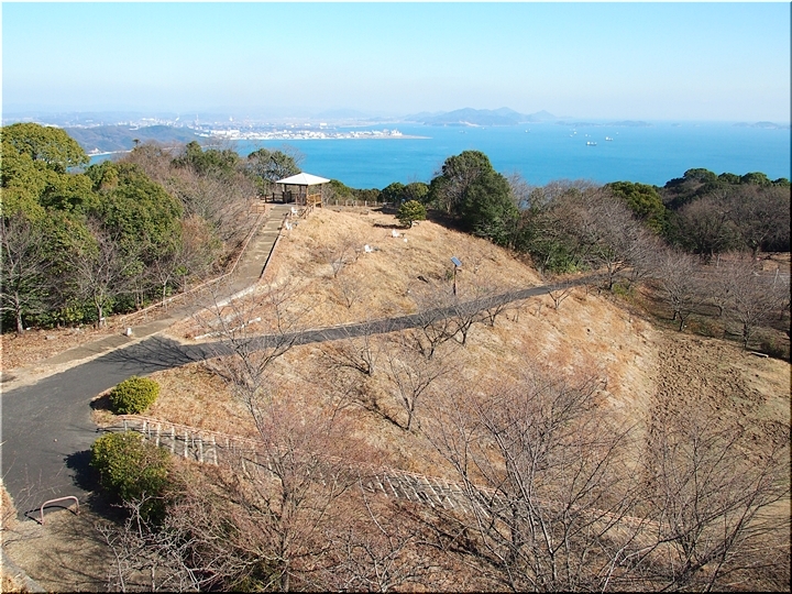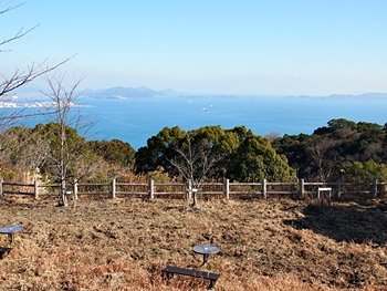 展望台にと上がりますと、さすがにここからですと、青々とした瀬戸内が広がります。イィ景観ではあります。