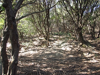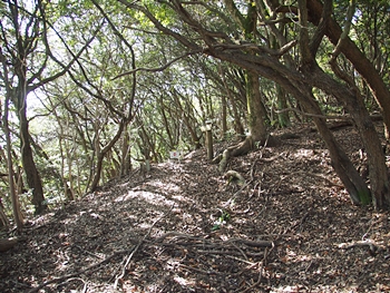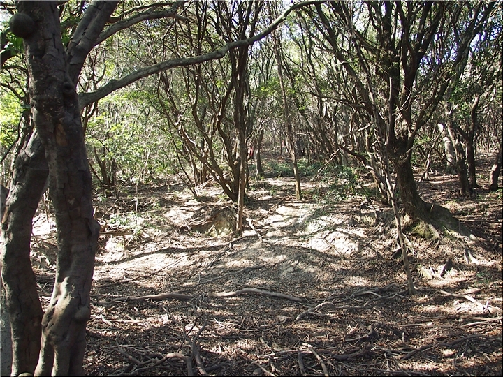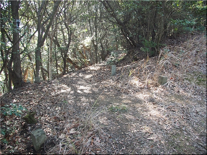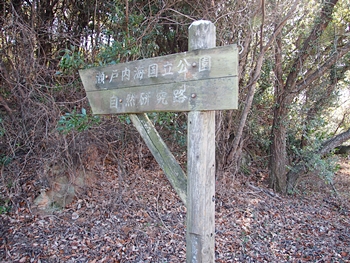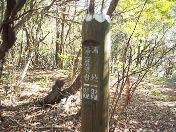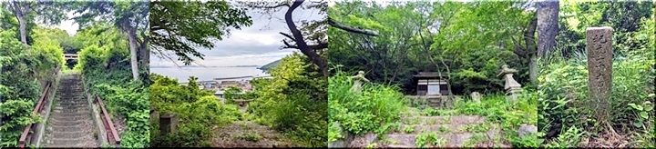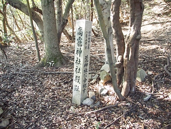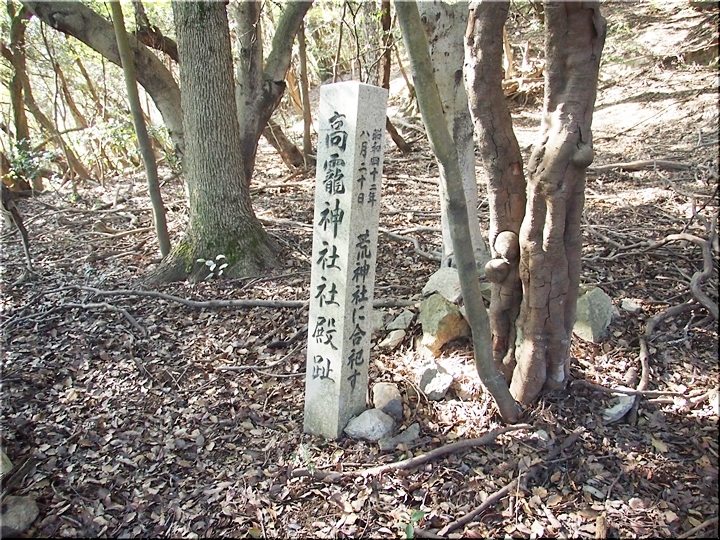 次第に歩道が下って行きますので、う~ん、〝探勝歩道〟でなくて、このまま進みますと鞆の町に下りてしまいますねぇ~引き返そう…と思っていましたら、〝高龗神社社殿跡 昭和42年8月20日 荒神社に合祀す〟と刻まれました石柱が…