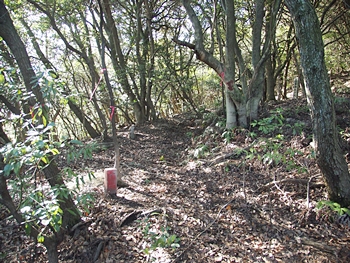 赤いリボンを頼りに展望台横を上がって行きますと、〝後山園地探勝歩道〟入口が見えて来ましたネ(^-^)/