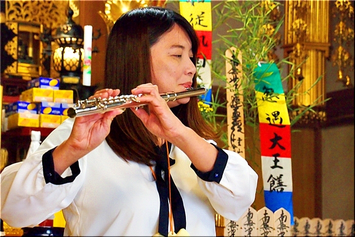 ふ〜ん、法要後は久し振りにミニコンサート≠フようですネ。コロナ禍以前までは、春・秋彼岸会のいずれかで行われておりましたけど、コロナ禍では、法要を終えますと、お接待の品・お塔婆を手に散会となりまして、以降は、お上人の法話・外部講師をお招きしての講話が続いておりました。
