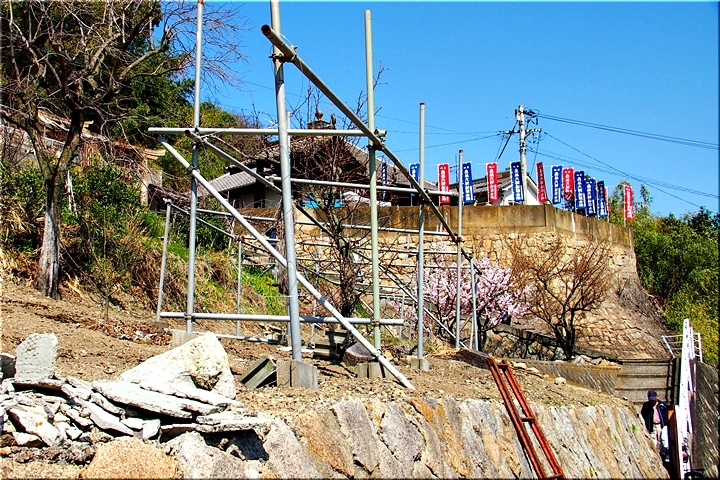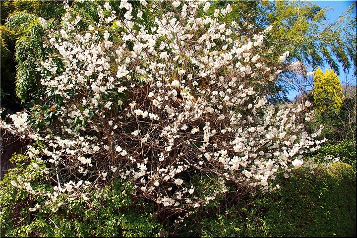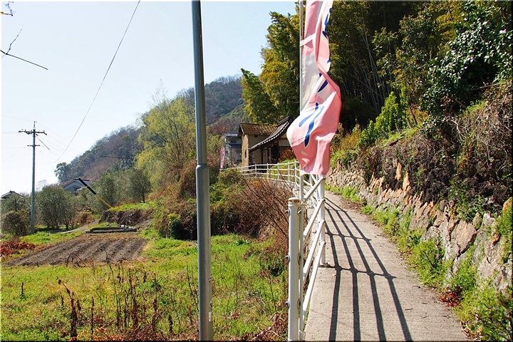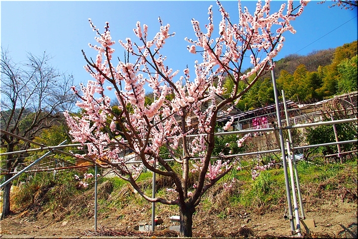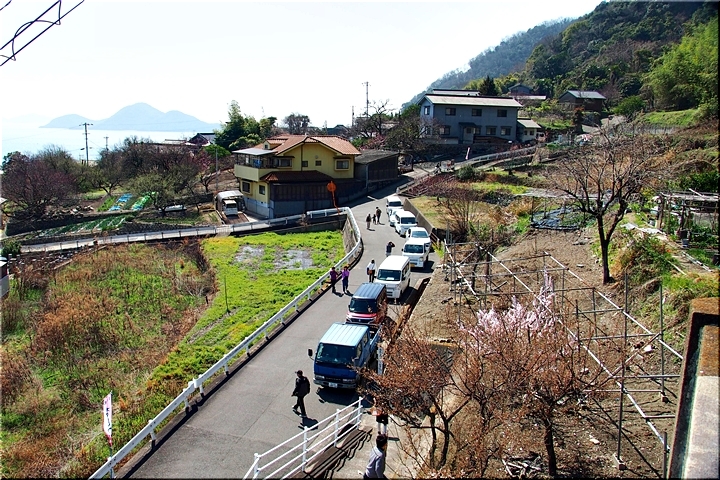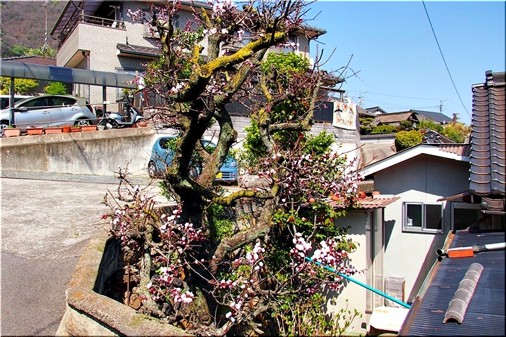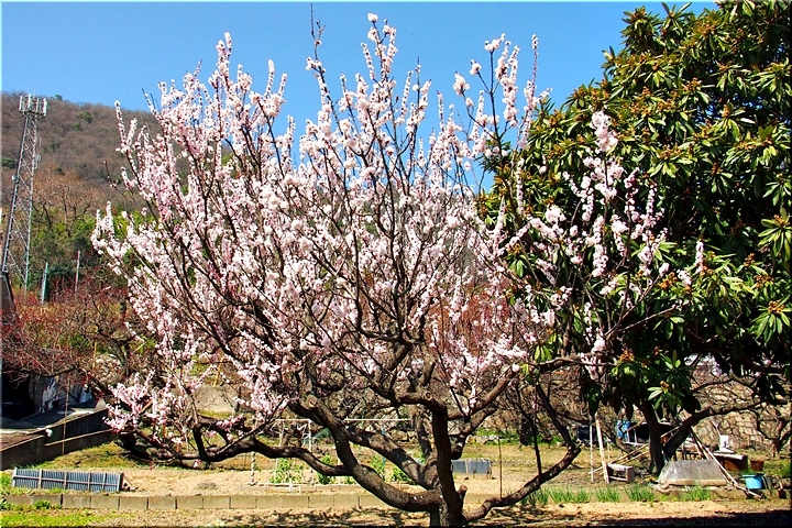 田尻に到着しますと、海岸沿いのあんず広場≠ノ駐車し、山側の「杏品種比較試験地」に上がって行きます事に。つぃ先日まで冷たい日々でしたから、まだ杏の花の満開は期待薄の感もありますけど、民家の杏に眼を向けますと、結構、開花していますのもありますネ。