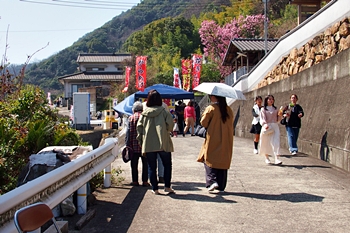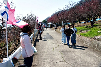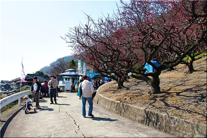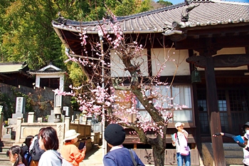 この方達を横目に、GONsan達は、とりあえず露店の前を通過し円明寺≠ノと向かいます。円明寺手前の山側には、これは梅の花なのかも…満開状態で大変キレイ(^.-)☆