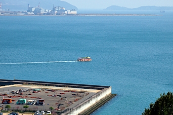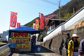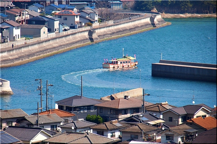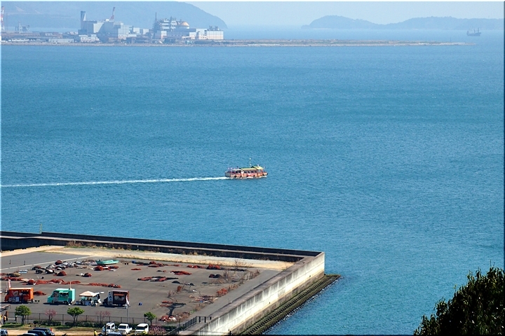 GONsanが車を駐めましたあんず広場°゚くの港からは、丁度、杏船≠ェ出航です。