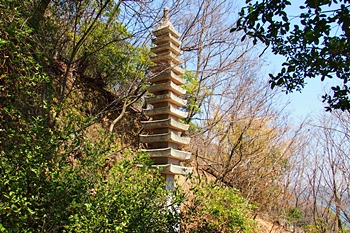 福山駅前から鞆港に行くまでの道程に「十三仏入口」というバス停がありますので、そこで下車してくださいね。バスを降りて、山手には菜の花畑が広がっています。3月も終わりころになると、黄色に杏の花がちらほらし始めます。4月には、桜も加わって豪華です。