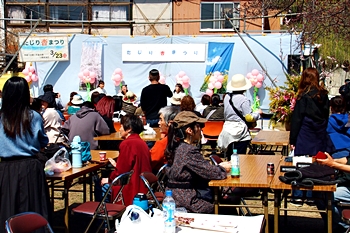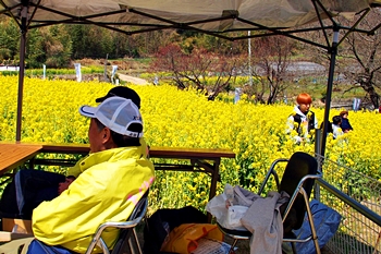 このまま待っていますと、枝広市長sanのご挨拶、ブラスバンドのパフォーマンス…等が始まりますのでしょうけど、テーブルの空きスペースも無さそうですから、菜の花畑≠ノ向かいます事に。
