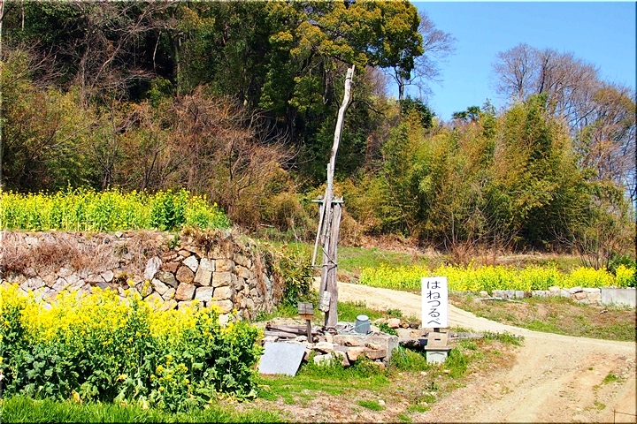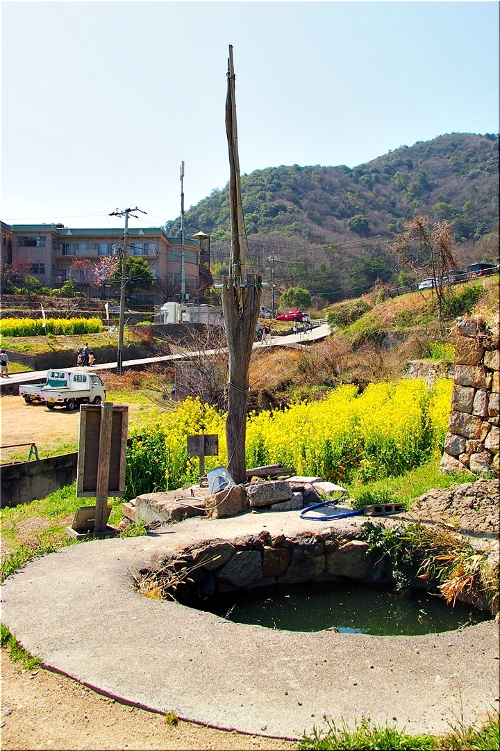 『ザ!鉄腕!DASH!』のロケが行われた田尻町。この写真は、その際にTOKIOの方々が作り方を教えてもらった「はねつるべ」という井戸です。菜の花畑の中に2つほど残っています。ロケの時に作ったものの名残でしょうか?TOKIOのメンバー山口達也さんが訪れたのは、まさにここ広島県福山市田尻町。