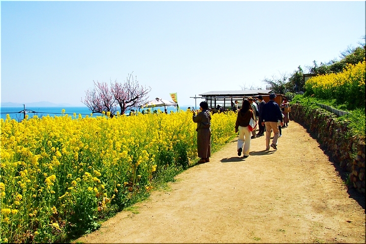 一面の菜の花が陽気な春を感じさせてくれますし、穏やかな瀬戸内が、開放感をも抱かせてくれますネ(^_^)v 右を向いても左を見ても、つぃカメラを向けたくなりますイィ景観であります(^-^)//"