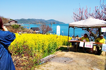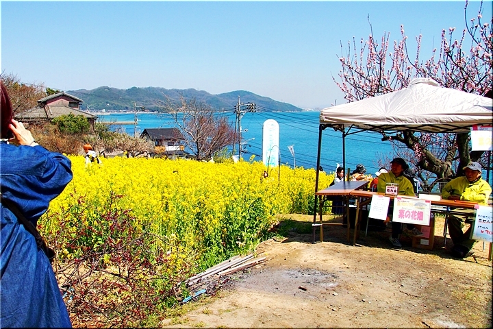 ★梅の香が漂う菜の花畑は、瀬戸内海を背景に