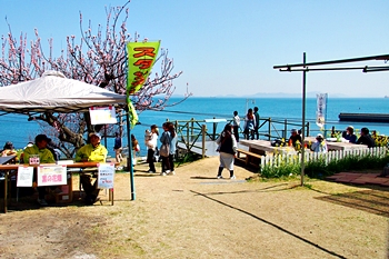 2月の終わりころから咲き始める梅の花と一緒に見る瀬戸内海は、なんとも優美です。