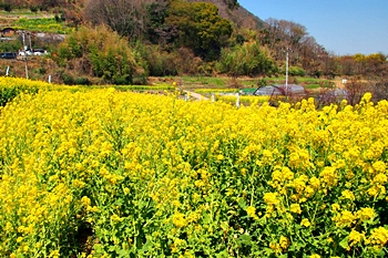 今、田尻町(十三仏一帯)で菜の花が咲き始めています。瀬戸内海をバックに約150,000本の菜の花が見る人を魅了します♪