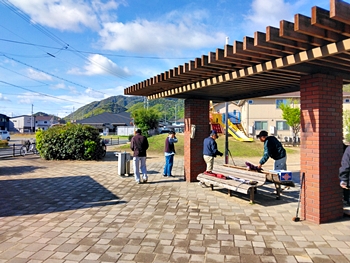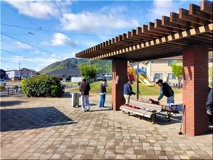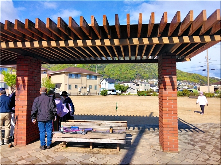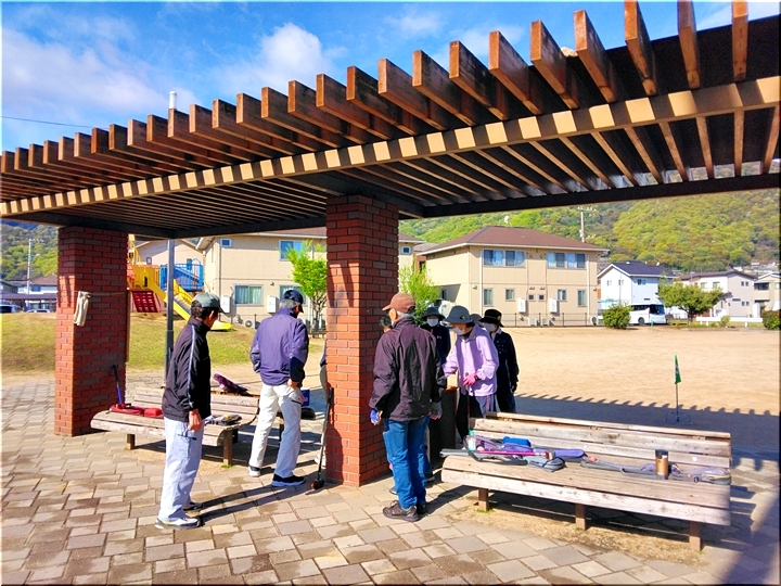我が家に帰り、浜自治会の浜あおむし公園≠ノ眼を向けますと、ここでは5名の皆様がプレー中。