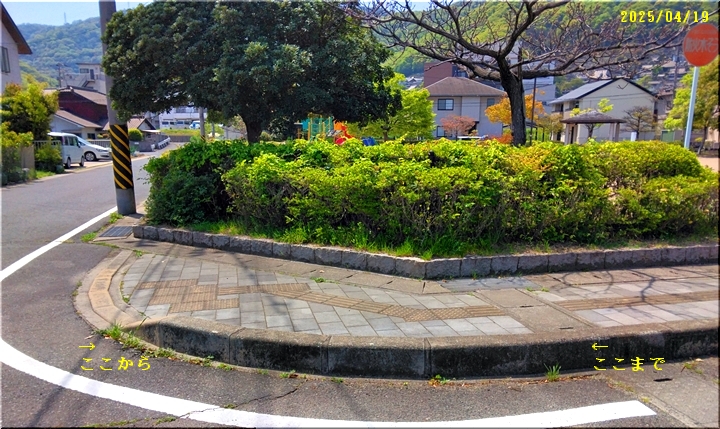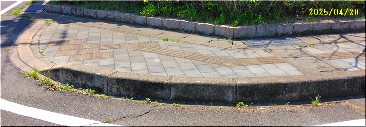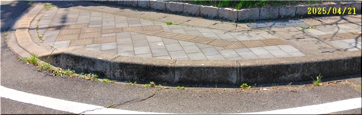浜あおむし公園§e歩道の縁石部分。ここでしたら、毎日眼に出来ますから、進捗状況の確認はいつでも可。で、早速、除草剤をスプレー散布となりました。