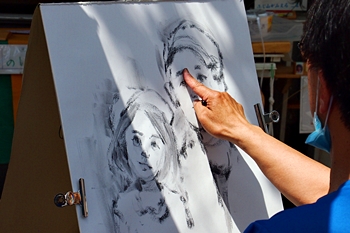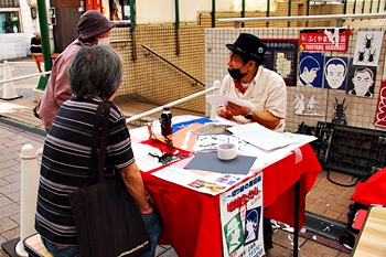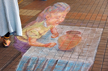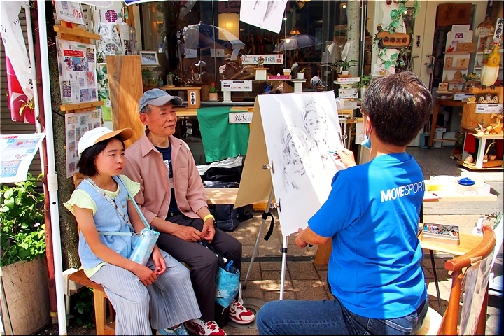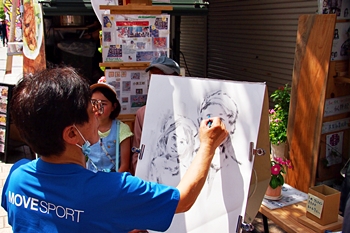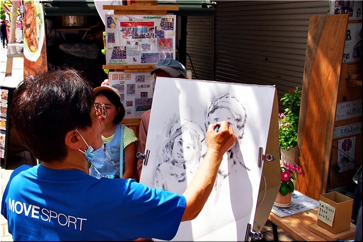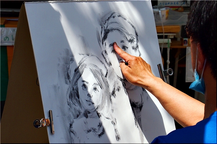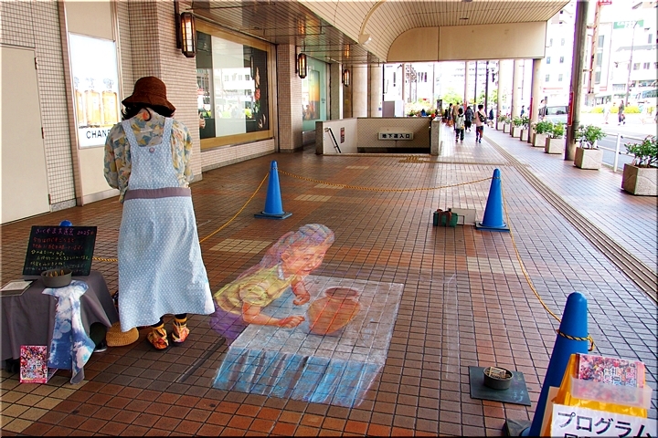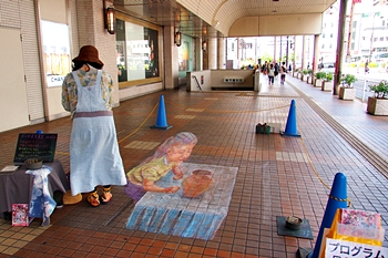 で、元町アーケード北口≠ノ向かっていますと、昨日同様に松本かなこ《anが路上絵を作成中。これで完成なのか作成途中なのか分かりませんけど、とりあえず1枚パチリとなりました(^.-)☆