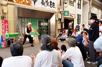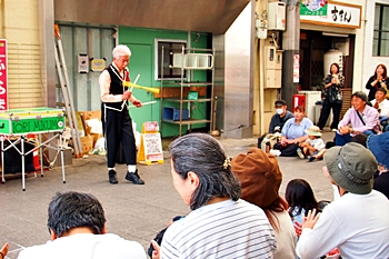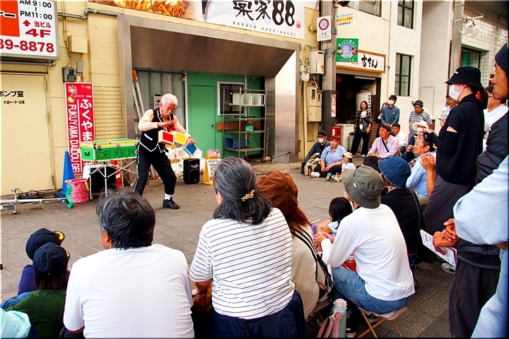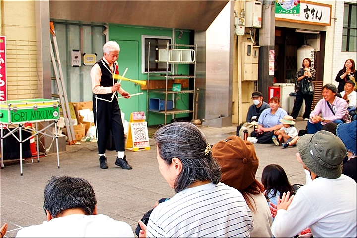 よく見掛けます大道芸ですけど、これが仲々面白いし楽しく拝見出来ますネ。