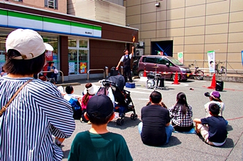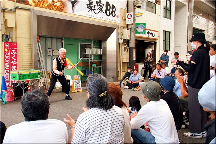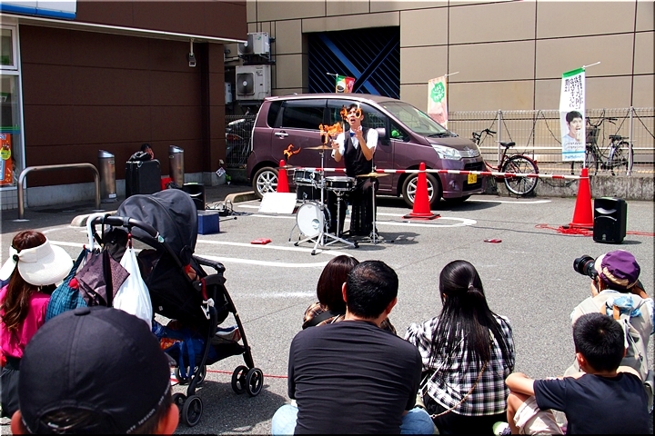 国道2号線を渡った久松通り(ファミリーマート)では、GAKU《anが熱演中。