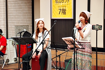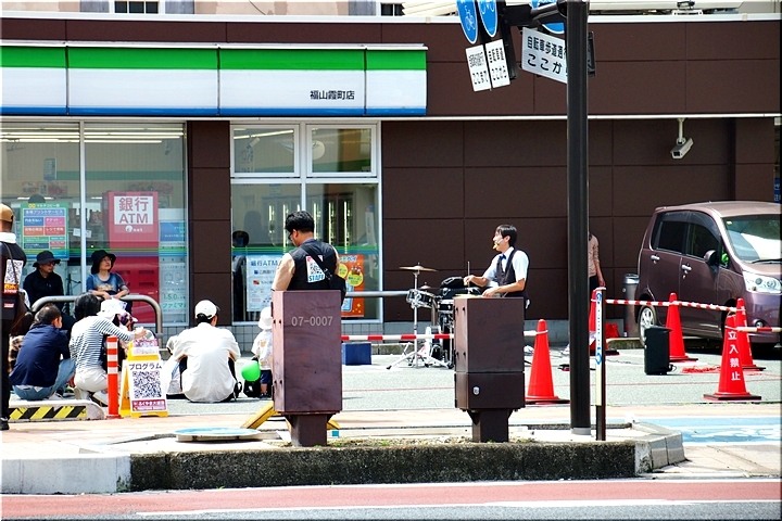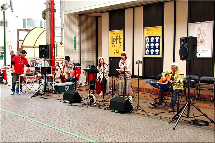 まずは、アイネスフクヤマ¢Oから地下道を通り、天満屋正面入口前へ。ここでのパフォーマンスは、10:45からのようでした。