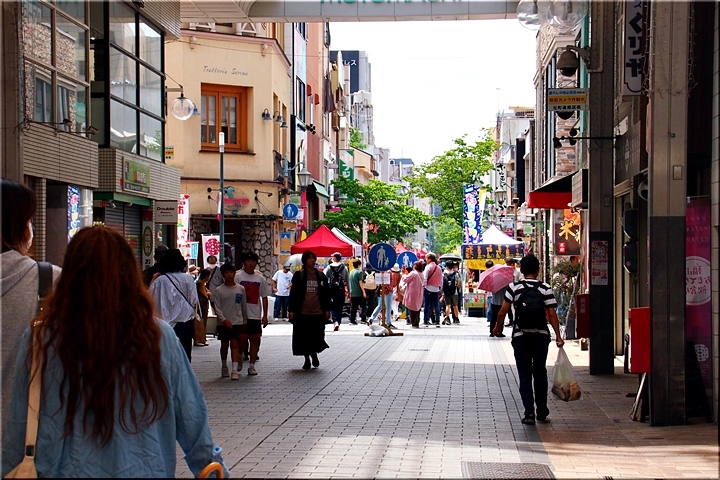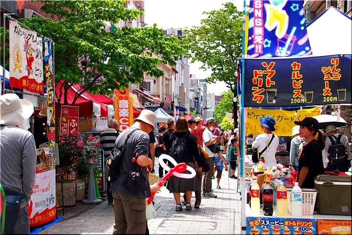 切り絵たかし《anを横目に、宮通りを抜け久松通りを進みますが、通り両サイドの露店が大変賑わっておりました。