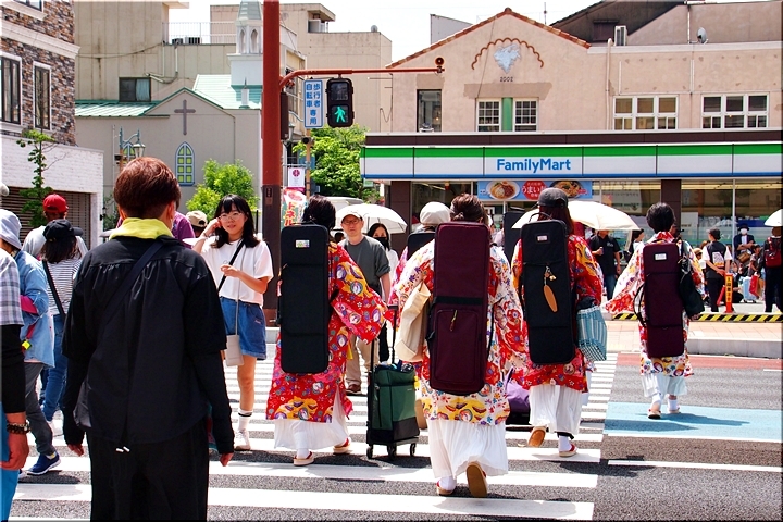 ひさまつどおり南ポケットパーク≠ノは、先ほど、国道2号線をGONsan達と渡っておられた方々が…何処に向かわれるのだろう…と、後方をGONsanは歩いておりましたけど、ふん、ふん、街角音楽祭≠フ方達でしたか(^.-)☆
