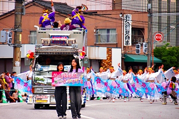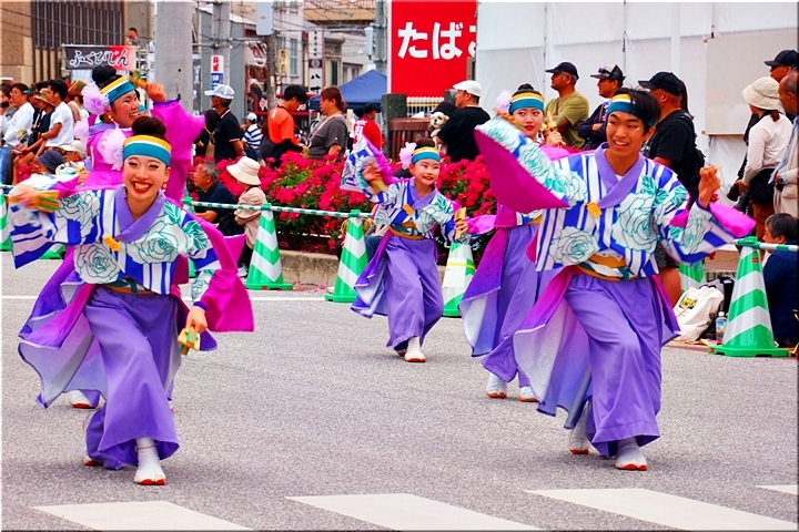 現在は岡山、島根、山口、香川、岩手、高知にも仲間が増えました。未就学児から68歳まで幅広い年齢層。?よさこい文化の継承と町の活性化を目指すがコンセプトです。女性7割、男性3割です。