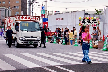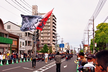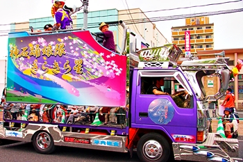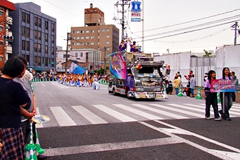 テーマも楽曲名も「SAIEN」。ロック調の力強い音楽で、後半は沿道のお客さまと一緒に盛り上がれます。?祭りの「縁」をつなごうとの思いでテーマを設定。最も熱い「炎」、祭りの「宴」、見てくださる一人一人の「SAIEN」をイメージしていただけるようにと願いを込めています。
