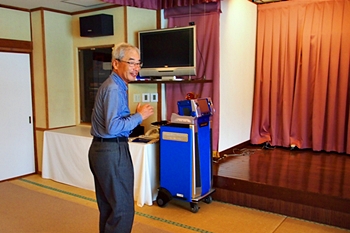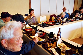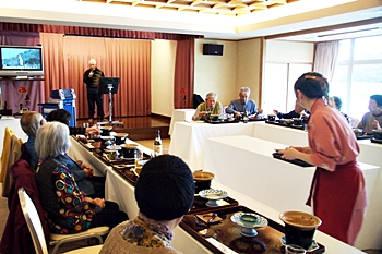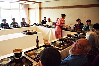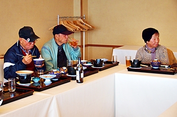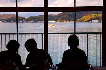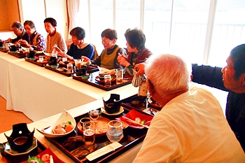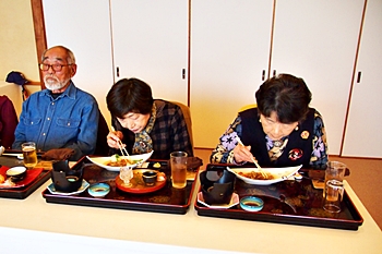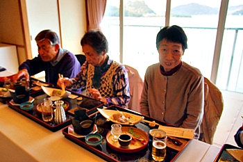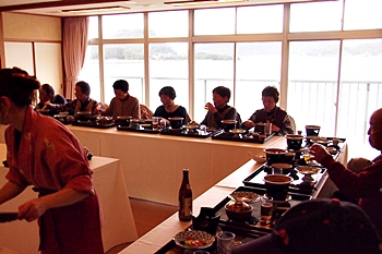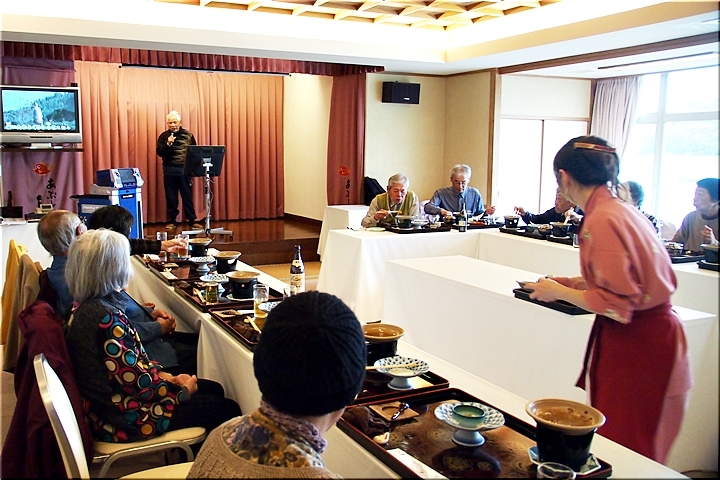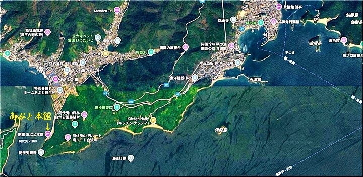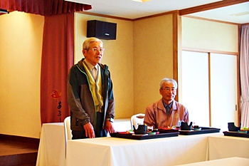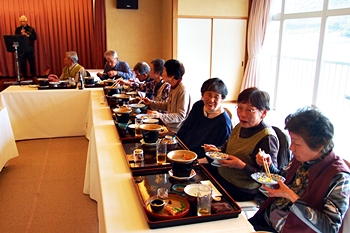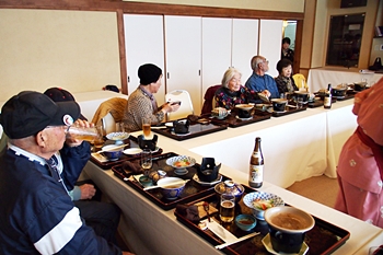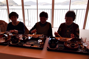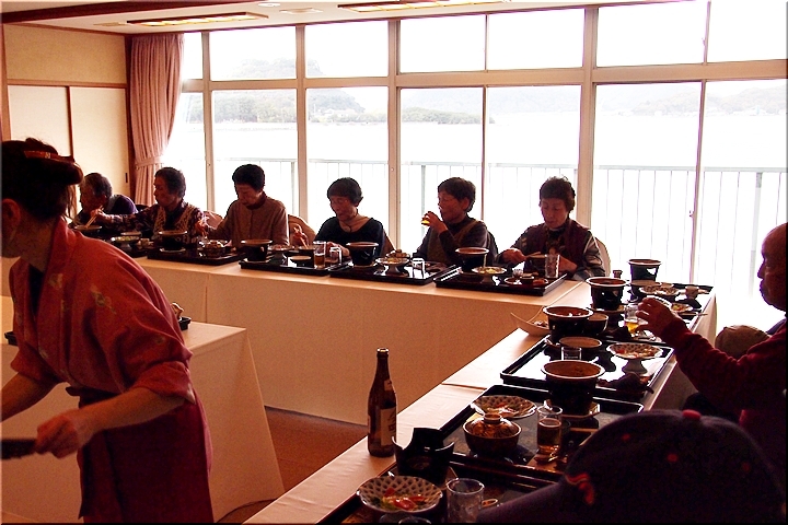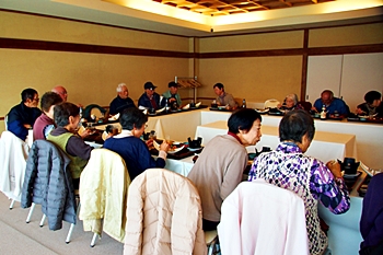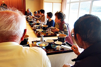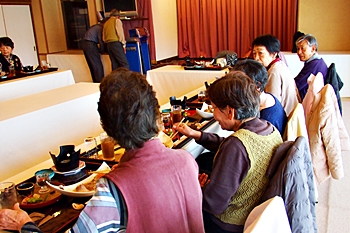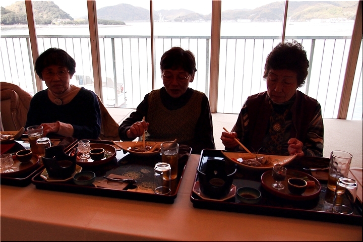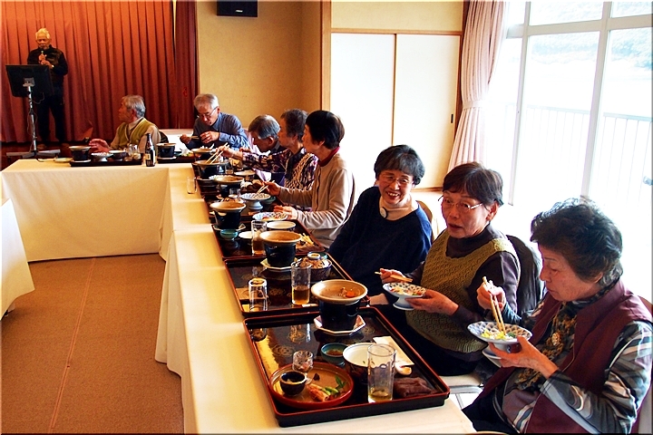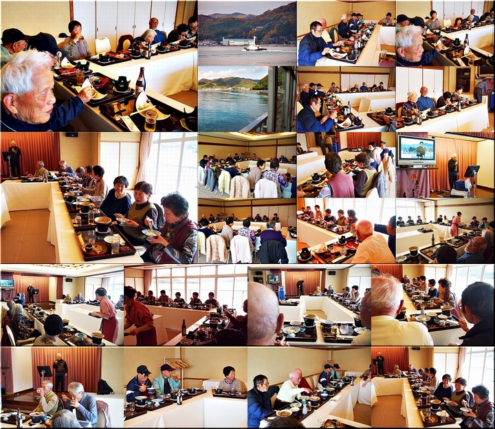 この頃には既に降雨はありませんで、A.M.11:00に中村集会所に集合し、あぶと本館《anの送迎バスで、阿伏兎観音近くのあぶと本館≠ヨと向かいます。